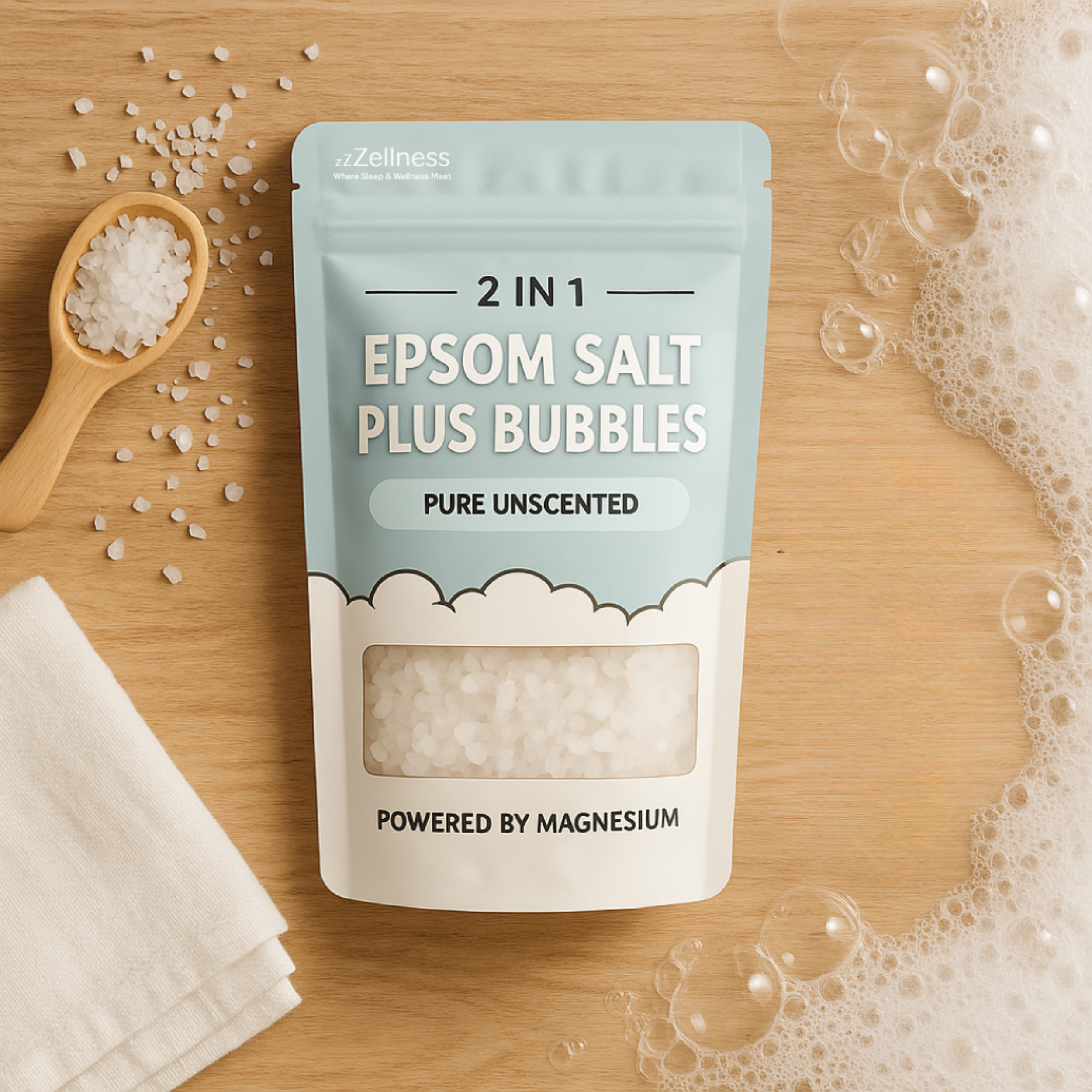 Magnesium soak + foam bubbles in one effortless session.
